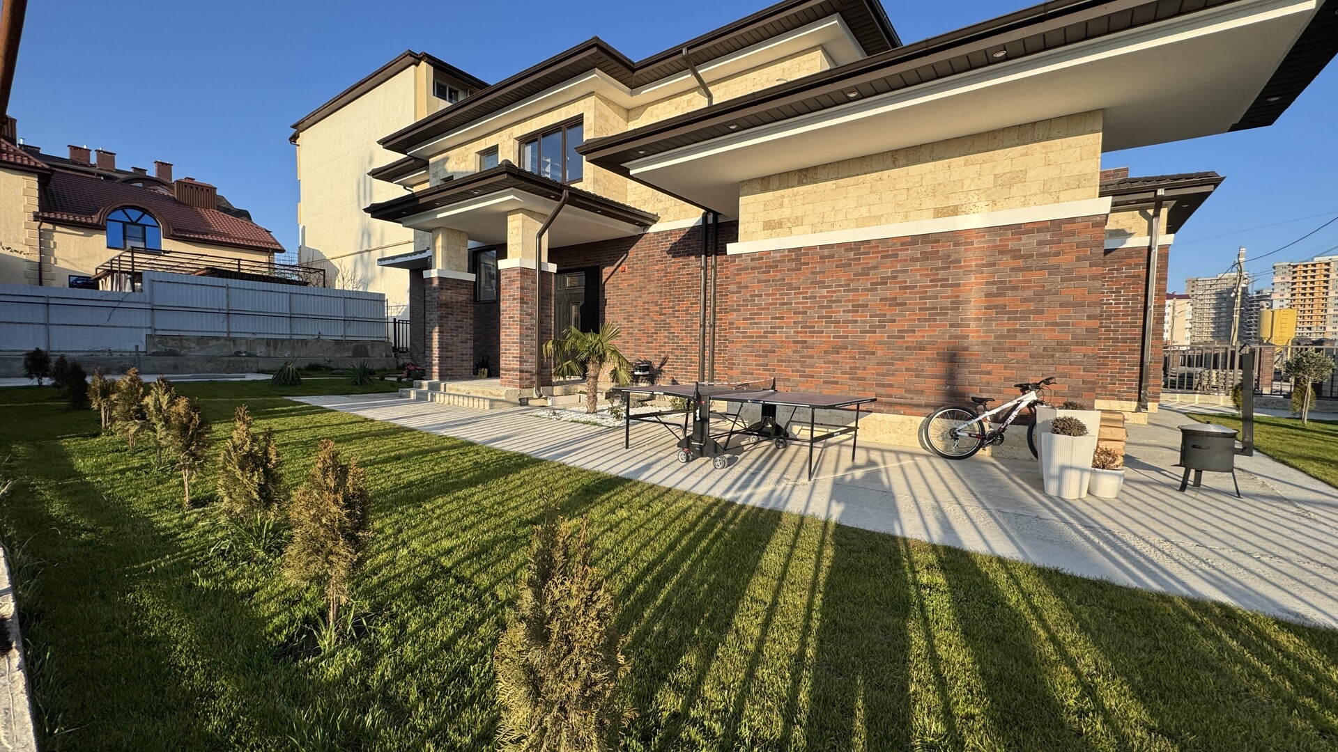 Продается 2 этажный дом , площадь земельного участка 6 соток , дом монолитный , по фасаду облицован красивейшим кирпичом , шикарный проект дома не оставит равнодушным никого ! Витражное остекление террас , сложная многоуровневая крыша -что придает особый и индивидуальный вид дома , дом строится из высококачественных материалов, также подведены все центральные коммуникации! Благоустроенный двор , инфраструктура в шаговой доступности . До моря 700 метров 🌊Место шикарное , экологически чистый воздух